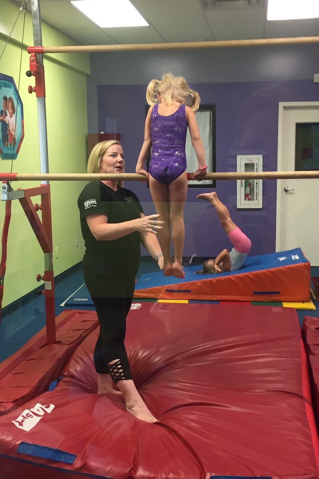 I know absolutely nothing about gymnastics, and I knew absolutely nothing about where to even start. I talked to a few friends, and everyone had a different opinion regarding where we should go. There a big difference between gymnastics and cheer-mastics so that began narrowing it down a bit. The beam and bars were a must for this one. I finally decided we would start "small" just to truly gauge her interest. I mean, she's five years old. She's a rather determined five year old though and for the most part means serious business.So we started out at The Little Gym in August. Now look. I didn't immediately tell her the name of the place. There was a reason for that. I just told her we were going to gymnastics. So after her first class, Mason and Hannah Kate were all hot-to-trot to see the pictures I took. And, of course, Mason would be the one to spoil it all. And, let me tell you, he knew exactly what he was doing! Ellie was not thrilled when he informed her that she was going to The LITTLE gym.