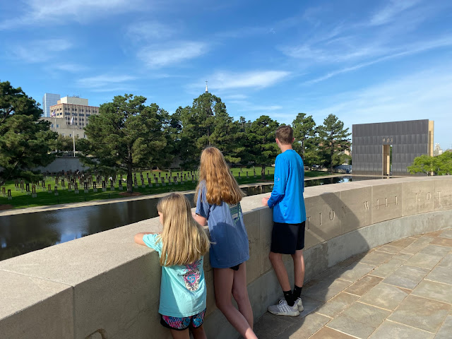 The next morning, we visited the Oklahoma City National Memorial before leaving the city. I very clearly remember the Oklahoma City bombing in 1995. It's my first clear memory of the horror of domestic terrorism. The memorial is stunning! It is absolutely beautiful, but it's also very somber. It reminded me of my experience a few years ago at the 9/11 Memorial. I really enjoyed our time here.